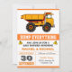 Överraska dina gäster med denna coola byggtema inbjudan till baby shower som innehåller en dumper och söta byggelement med modern typografi på en vit bakgrund. Lägg helt enkelt till dina evenemangsuppgifter i denna lättanvända mall för att göra den till en unik inbjudan. Vänd på kortet för att avslöja ett livligt gult och svart randigt mönster på baksidan av kortet.