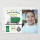 Foto dumpa allt roligt sopbil födelsedagsinbjudan med bakre utskrift.