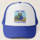 Blå och vit truckerkeps med Dumpa Trump och sopor som han använder slogan från Ta ut från trash.com