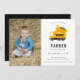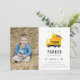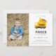 Söt dumper lastbil konstruktion tema, födelsedagsfest foto inbjudan.