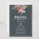 Dunkelblå, rosa blomster- och guldbröllopsdusch inbjudningar