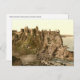 Fotomekanisk avskrift av Dunluce Castle i grevskapet Antrim i Nordirland, som togs mot slutet av 1800-talet. Fotografiet visar ruinerna i det gamla slottet som ligger på en utsida som är tillgänglig för en bro från fastlandet. Den gamla bron kan ses till lämnad om bild. Foton från kongressens Bibliotek LC-GRÄV-ppmsc-09842.