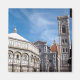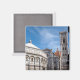 Souvenir-fotomagnet med kvadraten Piazza San Giovanni med katedralen Duomo, St. John:s baptistverk och Campanile di Giotto i stadskärnan Florence, Toskana, Italien.