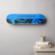 Skateboard har en unik utformning med ett massivt blått block på ena sidan och ett snurrande mönster i blått och svart på den andra sidan. Anpassa med eget namn eller egen text för en underbar presentidé för dem som går på kärlek. Namn är i lodrät i svart brev.