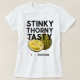 "Durian: Stinky, Thorny, Tasty" fångar på ett perfekt sätt det väsentliga i denna koniska tropiska frukt genom att belysa dess unika och polariserande egenskaper. Skaffa den fantastiska T-Shirt som beskriver de här.