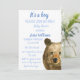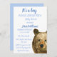 Det är en pojke! Exemplet med den ljusa brunbjörnen pojke, inbjudan till könsneutrala babyduschar. Baby Shower. Rustic, björn, vattenfärgsmålning av Monika Howarth. Natur, skogsdjur, inbjudan till babydusch med blå illustration. Anpassa den med dina detaljer.