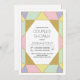 Abstraktens geometriska juvel gemstone-pars duschbröllopsinbjudan. Trendigets contemporary bröllop-design har trianglar i ljus rosa, myntorienterad grönt, lätt gult, mauve och guld. Trianglarna har FAUX-tryckta konturer som ser ut som glitter eller guld och bildar en abstrakt juvel.