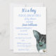 Det är en pojke! Cute grått kattunge illustrerar pojke, en könsneutral inbjudan till babydusch. Baby Shower. Rustic, katt, vattenfärgsmålning av Monika Howarth. Natur, husdjur, en blå illustration, en inbjudan till babydusch. Anpassa den med dina detaljer.