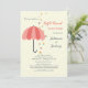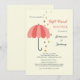 En söt inbjudan med ett tvåtons rosa paraply med en dusch av fantasifulla blommor.