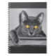Ett foto tittar rakt i ansikte på en grått-katt med guldglödande öga. Redigerad med selektiv färgning för att framhäva det meseriserande ögat.