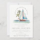 Dusky Teal Sailboat Handflatan Sjölandskap Förlovn Inbjudningar