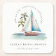 Dusky Teal Sailboat Handflatan Sjölandskap Möhippa Underlägg Papper Kvadrat