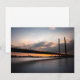 Resefoto av bron "Rheinkniebrücke" i Düsseldorf, Tyskland, fotograferat på kvällen höger efter solnedgången.