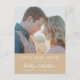 Dusty Beige Modern Typography Minimalist Photo Bröllop spara datum annoncement Postcard. Låt er familj, vänner och kolleger veta att ni har fastställt ett datum för ert bröllop firande med detta elegant, snyggt och det moderna bröllop spara datum-inbjudan. Alla texterna är i förväg ordnade så att du enkelt och snabbt kan anpassa dig med dina egna detaljer.