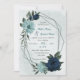 Unik bröllopsinbjudan med romantisk dammblått och marinblommor och grönt lämnar botaniskt geometriskt ram. OM DU VILL HA MER MATCHING PRODUCTS klickar du på samlingen ovan eller kontaktar mig.