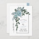 Dusty blue water-blommor och arch vår bröllop Spara vykortet för datum. Den här fina bröllop-designen har ett ram med dammiga blåkaktus-blommor och grönt-löv i det övre lämnat hörnet. Namn är i manustypografi.
