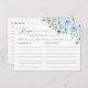 Lägg till en personlig beröring till möhippan firande med den här snyggten och de minnesvärda receptkorten! Utformningen har dammiga blå vattenfärgblommor och grönt mot vit bakgrund.