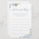Behåll dina gäster med den här roligten "var var de befann sig", har romantisk vattenfärgsfärgad blommigt i dammig blå och sage-grönt, och snyggt modern manus, enkel och elegant, underbar för modern boho-möhippa, botaniskt trädgårdsbröllop party. Visa alla möhippa-spel i samlingen.