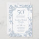 Den här Eleganten Dusty Blue blommigt 50-årsinbjudan är elegant, modern, chic och charming. Det är en utmärkt kombination av fint mjukt, dammigt blått ro och klokt grönt är flytande, delikat och vackert. Det är lätt att göra toppen unik. Välj Anpassa den här mallen och skriv in informationen. Om några sekunder kan du se din vackra inbjudan.