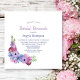 En elegant dammig blått och rosa blommigt möhippa brunch inbjudan.