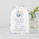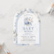 Dusty Blue and White Blommigt QR Code Baby Shower Inbjudningar