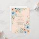 This design features a soft and romantic palette of light blue and pale apricot watercolor blossoms. Delicate wildflowers and airy foliage create a whimsical, ethereal atmosphere. The artwork displays a serene composition of botanical elements in sage green and pastel tones.