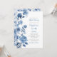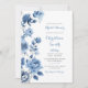 Dusty Blue Blommig Chinoiserie Bröllopsfest inbjudan