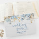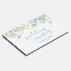 För bröllop och duschar är den här isigen blå och guld-rörda designen härlig för dina gästboksminnen. Unik, lätt Boho, typsnitt i klassisk och dammig blå. Baksida är en fast skifferblå färg.