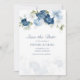 Vattenfärgkort för blommigt i elegant, dammigt blått, vitt och marint blommigt bouquet bröllop spara datum kort. Kortet innehåller ett skript "Spara datumet" som kan ändras till en typsnittstyp som du väljer och som är tillgänglig här när du klickar på knappen "Anpassa".