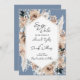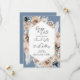 Den här Dusty Blue-Blommigten Boho Bröllop spara datum går in i en trendande färg-palett med dammblått, beige och champagne. Den har en vacker, romantisk vattenfärg ro och blommigtar med pampasgräs. Den här vackra paletten i färg är perfekt för ett vår, sommar eller fall bröllop. Anpassa med all information om bröllop.