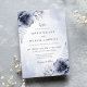En elegants bröllopsinbjudan till modern blommigt med dammiga blå vattenfärgblommor med handskriven kalligrafi.
