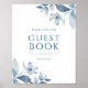 Denna dammiga blåfärgsskylt blommigt bröllop gäst bok är perfekt för ett romantiskt, utomhusligt bröllop eller ett chic, modernt firande.