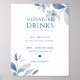 Dusty Blue Blommigt Bröllop Namnteckning Drinks-te Poster