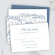 Svarskort för elegant och Bröllop OSA i klass. Har en blommigt och en liten konstform på baksidan i ett vackert dammigt blått färg. Redo för dig att anpassa dig med information om din speciella dag. Bläddra i Monogram och Blommigt Vapensköld Bröllop Suite för matchande produkter.