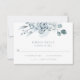 Dusty Blue Blommigt Bröllop OSA Card. Svarskortet för romantisk och snyggt bröllop OSA har en vacker, handmålad, dammig blå blomma som ordnats som en vacker bukett. Baksidan av inbjudan innehåller samma blommigt buquet med briden och triomens monogram. Sök efter matchande objekt i Dusty Blue Monogrammed Vapensköld Collection.