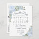 Dusty Blue Blommigt Bröllop spara datum Calendar Meddelande Vykort