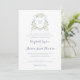Dusty Blue Blommigt Greenery Monogram Vapensköld B Inbjudningar