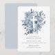 Dusty Blue Blommigt Greenery Neutralt Baptism Inbjudningar