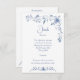 Dusty blue blommigt greenery ribbon elegant bröllo tilläggskort