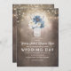 Dusty blåa blommor mason burk rustic landsbyggsbröllop inbjudningar