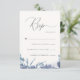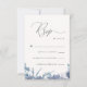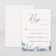 Vacker och Chic Dusty Blue Watercolor Foliage and Blooms med Elegant Calligraphy Cream Färg Osa Response Card.