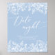 Dusty Blue Blommigt Möhippa Datum Natttecken Poster