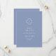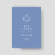 Chic med ungdomlig elegans. Det här dammiga blå och vita platta bröllop spara datum-kortet utstrålar en ny, modern och ungdomlig ton. Kortets framsida innehåller en contemporary med vit typsnitt och blommigt par monogram mot dammig blå bakgrund. Blommigtens monogram upprepas i bakkanten.