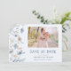 Gå in i en underbar firande av kärlek och naturen med vår Dusty Blue Blommigt Photo Save the Date. Detta fantastiska och unika inbjudan ger upphov till en aning boho-chic med vackert handmålade vildblommor i mjuka blekar och dammiga blues som berömts av ärliga tanter. Med vår lättanpassade mall kan du sprida din personliga röst och skapar den på ett riktigt sätt. Det vackra inbjudan är en perfekt för romantiker, elegant bröllop när som helst på året!