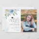 Dusty Blue Blommigt Photo Studentfest Inbjudningar