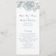 En lång tunn rackmonterings-bröllop-ceremoniell servicemall. Den här designen har ett dammigt blått program i bröllop, med en vacker blå botanisk grön blomma i ro blommigt och en serviceordning för enkel blommigt, minimalistiska botaniska gröna blommor, minimal kalligrafi-manusattypografi, modernt kalligrafskript, vanlig högtidlig ceremoni i kyrkan, minimalistiskt textskript, ett glimmat program för blad, fotoenkelt dubbla, elegant, enkel bröllopsprogram mall
