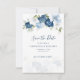 Vattenfärgkort för blommigt i elegant, dammigt blått, vitt och marint blommigt bouquet bröllop spara datum kort. Kortet innehåller ett skript "Spara datumet" som kan ändras till en typsnittstyp som du väljer och som är tillgänglig här när du klickar på knappen "Anpassa".