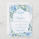 Dusty Blue Blommigt Silver Geometric Ram Bröllop Inbjudningar