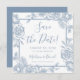 Dusty Blue-Blommigt Spara datum Inbjudningar