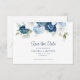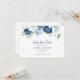 Vattenfärgen i elegant blommigt dammblå, vit och marin blommigt bouquet bröllop spara datum med QR-kodkort. Kortet innehåller ett skript "Spara datumet" som kan ändras till en typsnittstyp som du väljer och som är tillgänglig här när du klickar på knappen "Anpassa". Lägg till din bröllop-webbplats och QR-kod på baksidan så att dina gäster kan uppdatera behållan med dina planer